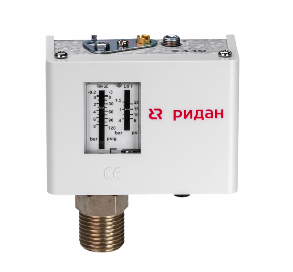 Реле давления KPI 35R, диапазон настройки -0,2...7,5 бар, дифференциал 0,7…4 бар, штуцер G1/4А, автоматический сброс Ридан (060-121766R)
