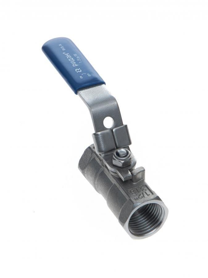 Шаровой кран резьбовой с рукояткой, корпус — коррозионностойкая сталь, шар — коррозионностойкая сталь AISI316; уплотнение по шару R-PTFE (15% C)