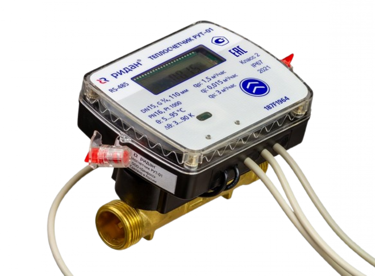 Теплосчетчик ультразвуковой РУТ-01 для учета в системах водяного отопления, DN15, Qp1,5, RS-485+4 импульсных входа, возврат (187F1970PR)