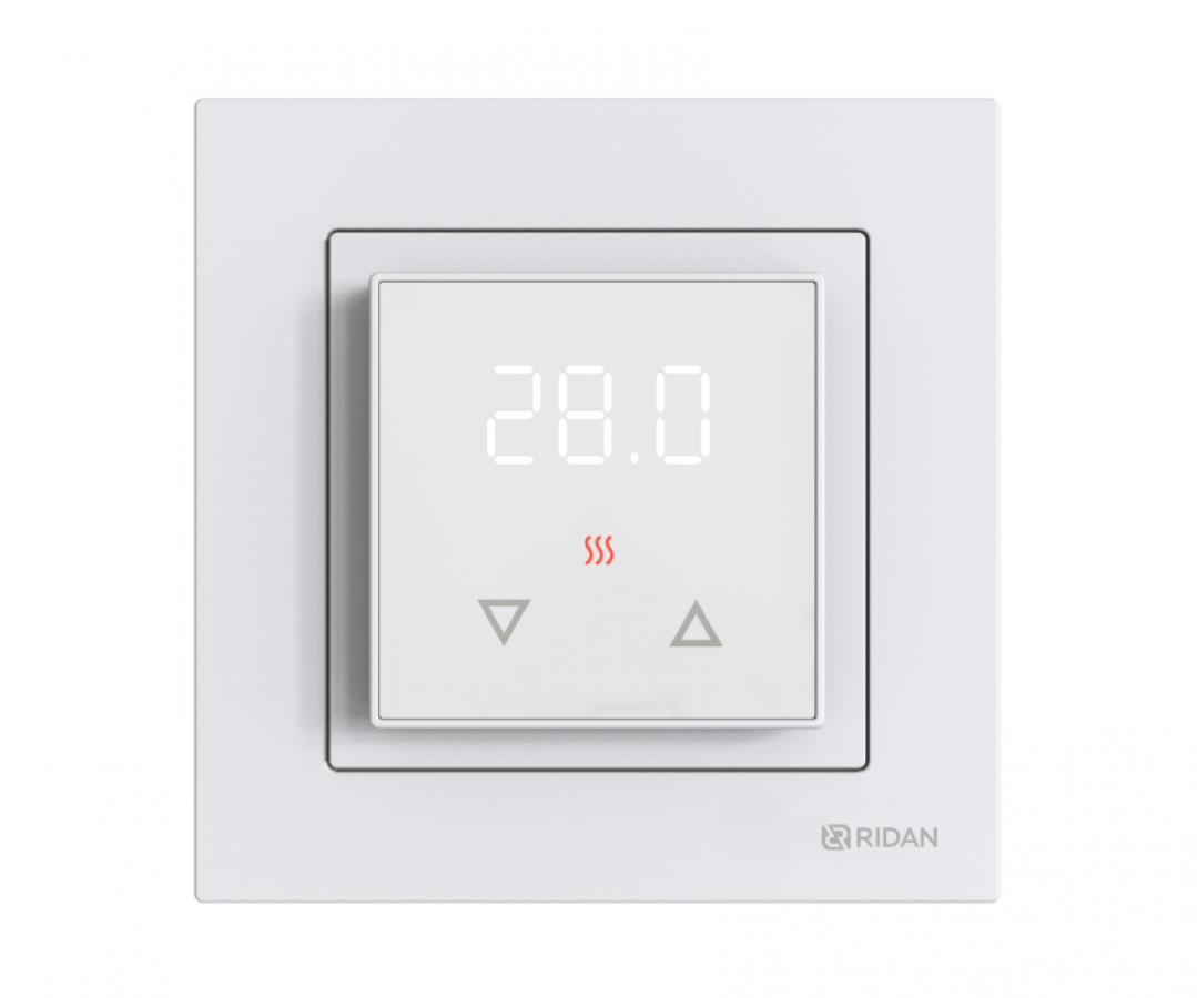 Ридан Room — электронный терморегулятор со встроенным датчиком температуры воздуха и датчиком температуры пола на проводе, предназначенный для управления электрическими системами комфортного подогрева пола или системами полного отопления помещений.