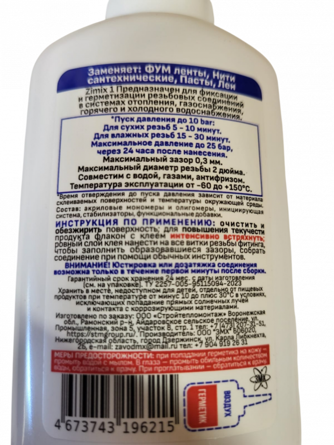 Предназначен для фиксации и герметизации резьбовых соединений в системах отопления, газоснабжения, горячего и холодного водоснабжения.