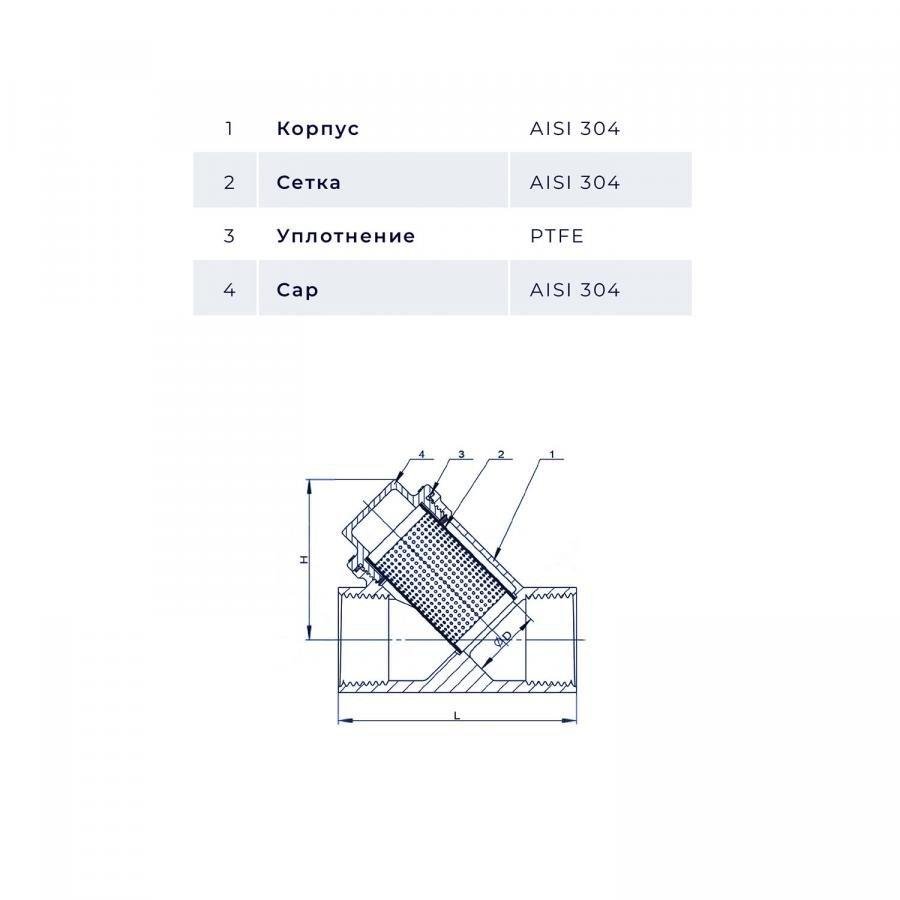 Фильтр муфтовый Y-тип нержавеющий, AISI304, DN25(1") (CF8), PN40 iFITTING (MG-YS25/4)