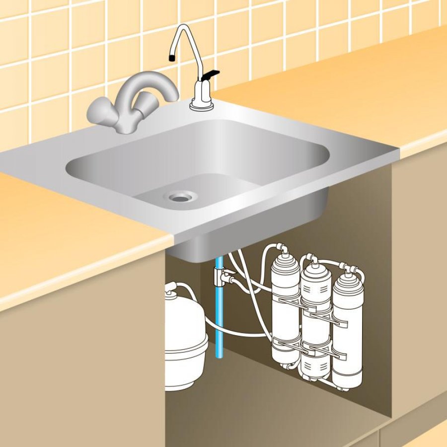 Классическая компоновка на новейшей технологической базе: 3 ступени очистки + бак + отдельный кран для чистой воды
