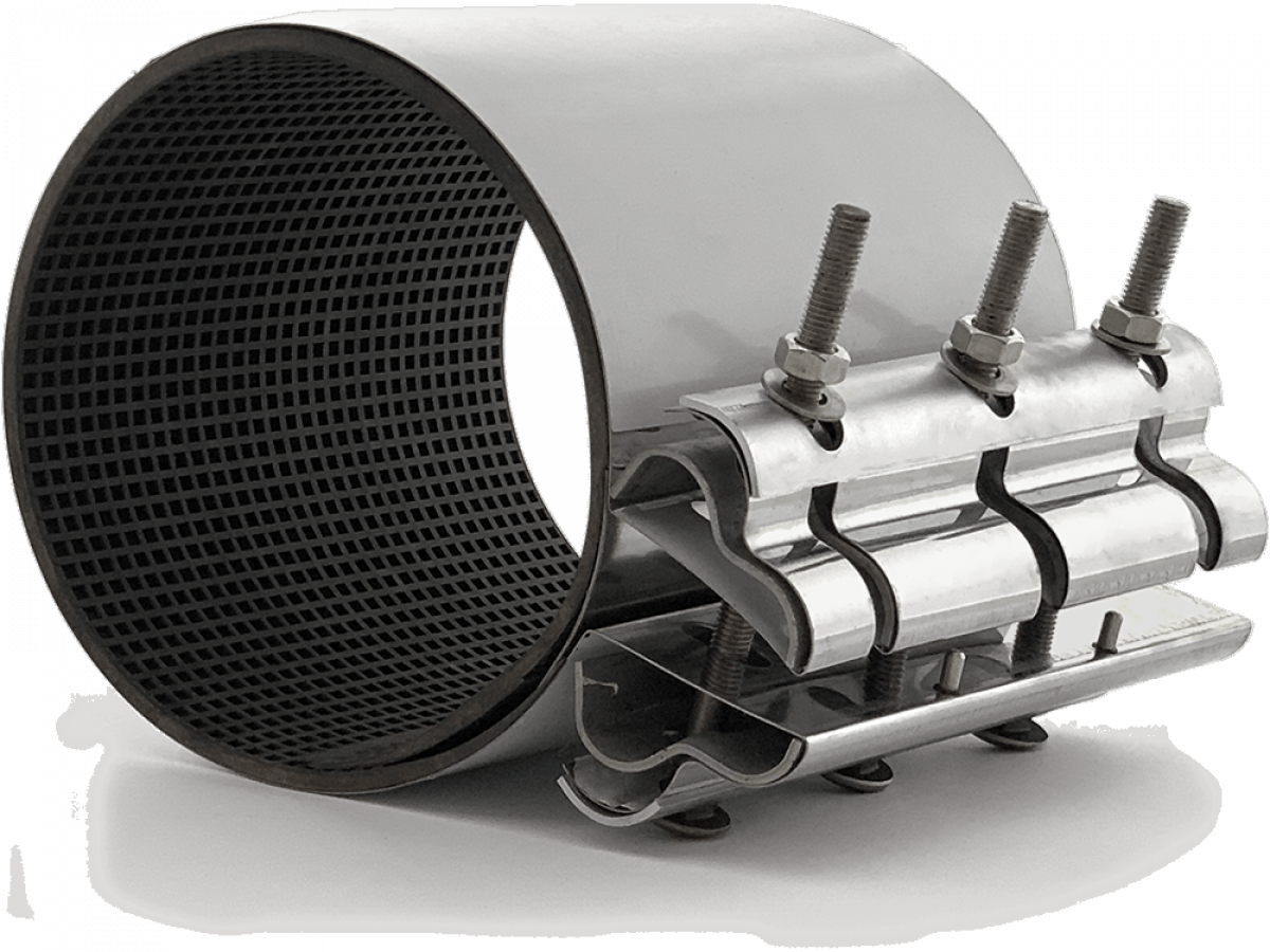 Свертный хомут усиленный предназначен для кругового обжатия трубы, если размер повреждения не превышает длины хомута по 20 мм с каждого края. Применяются на трубопроводах из чугуна и стали. Возможно использовать при повышенной влажности и под землей.