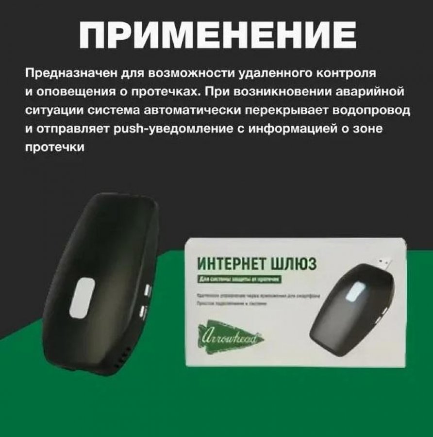 Интернет-шлюз подключения Wi-Fi Arrowhead применяется в комплексе системы защиты от протечек, обеспечивает подключение к сети Интернет и удаленного управления системой.