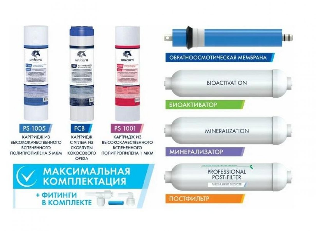 Комплект картриджей для обратноосмотической системы FRO-7 UNICORN (KCB_FRO_7) 549242