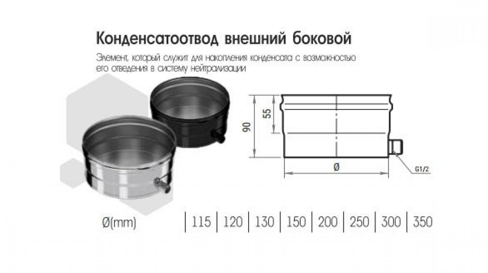 Конденсатоотвод для трубы внешний боковой Ф 130 (316/0,8) КРАФТ ГАЗ/Стандарт