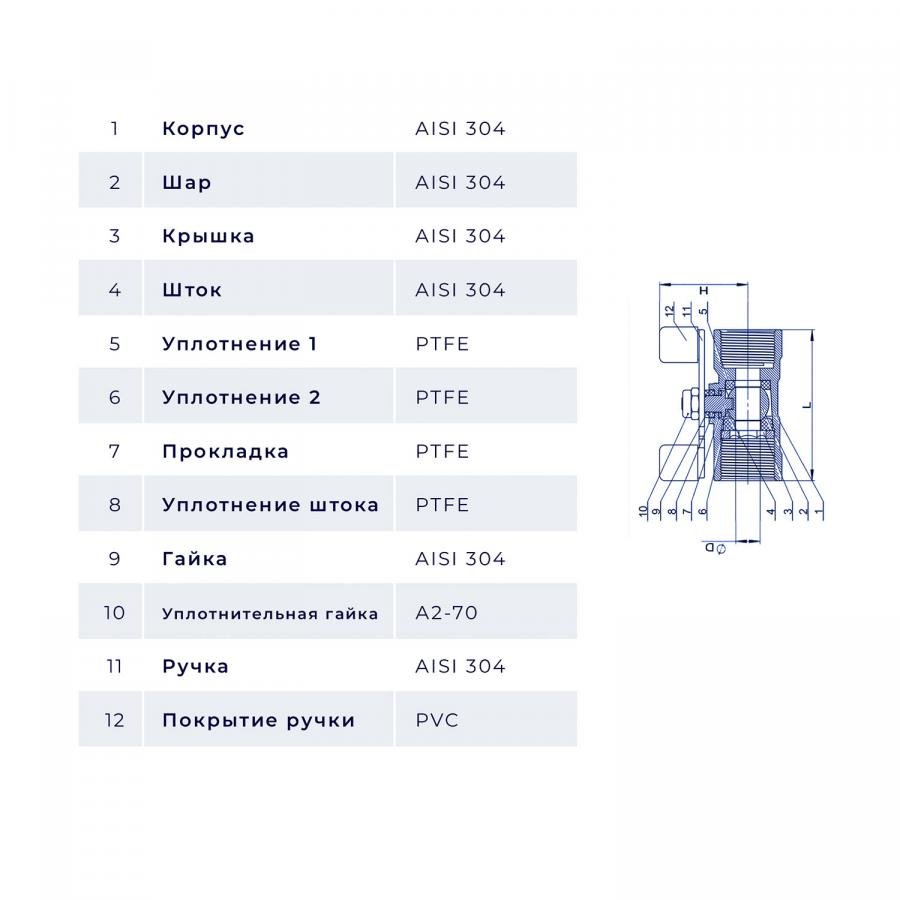Кран шаровый муфтовый "бабочка" стандартнопроходной, 1PC, AISI304 DN25 (1"), iFITTING (MG-BMGB25/4)