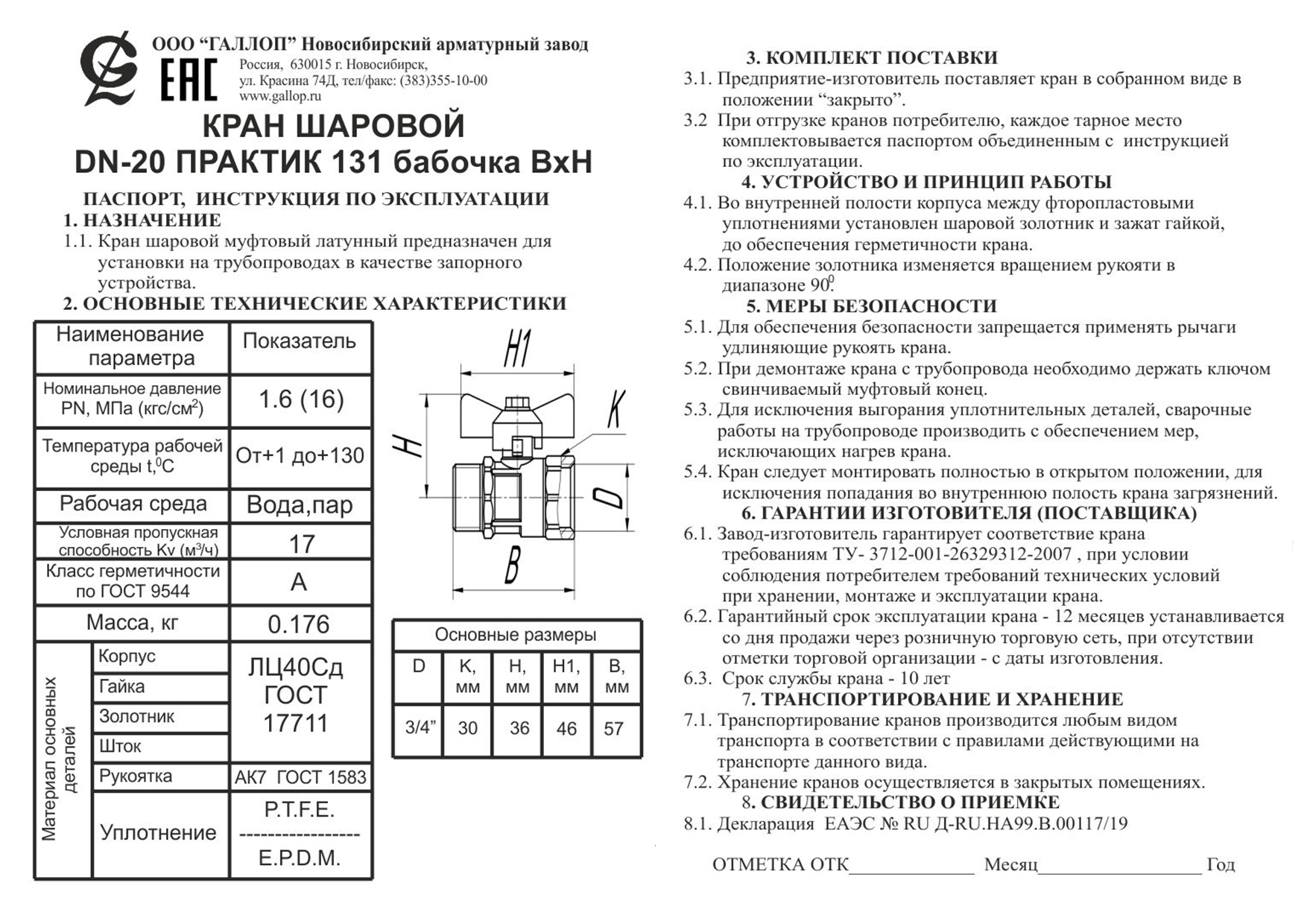 Галлоп - бренд Новосибирского арматурного завода, основанного в 1993 году. Компания занимается производством латунных шаровых кранов для воды и газа.