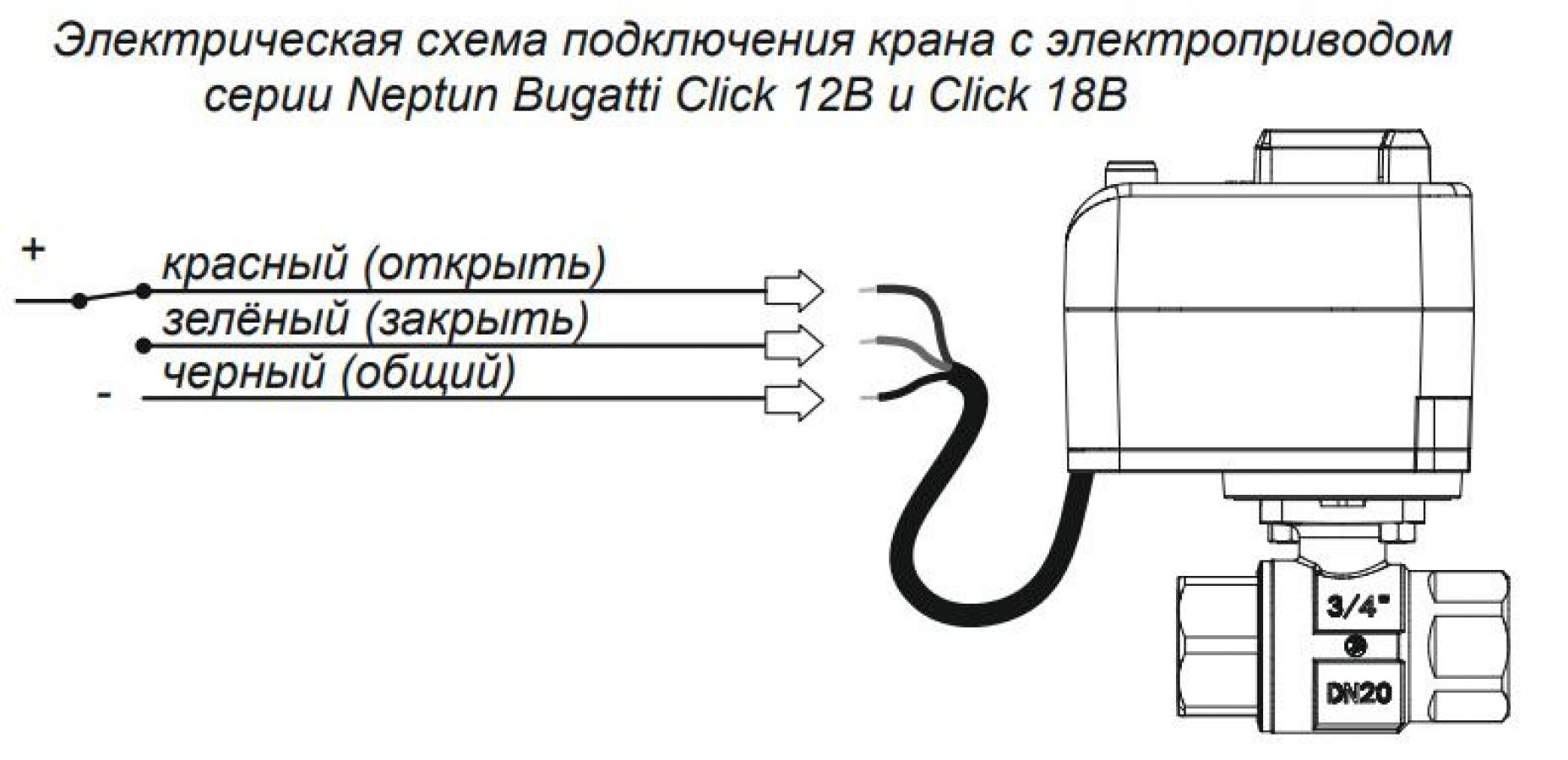 Кран шар.с эл.приводом Neptun Bugatti Click 12В 1/2"