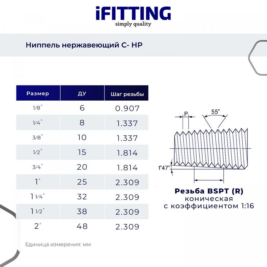 Ниппель приварной нержавеющий (резьба, полусгон) – это приварной резьбовой фитинг из нержавеющей стали, предназначенный для постоянного или временного герметичного соединения разных трубопроводов в единую систему.