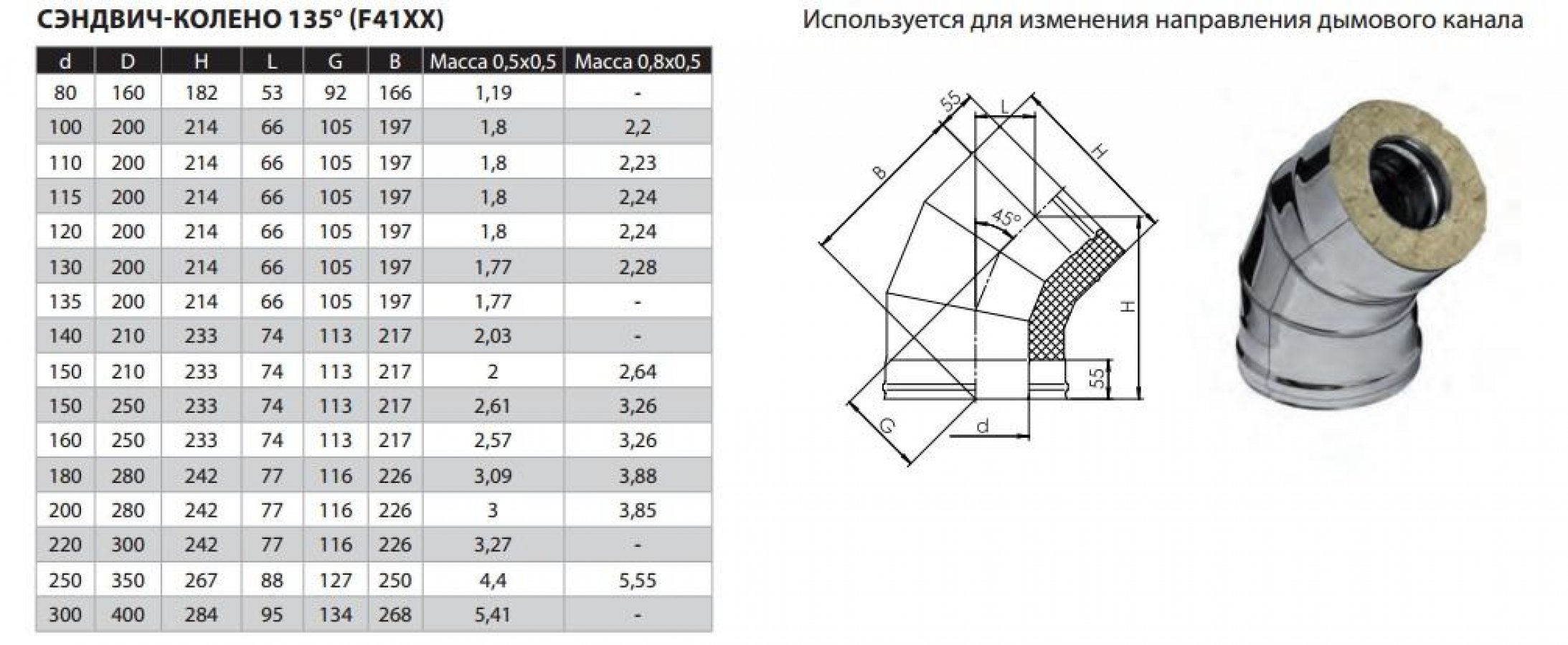 HF30-50Z Сэндвич колено 135 (45гр) Ф 115х200 (AISI_430/0,8+Zn) Ferrum (f4142)