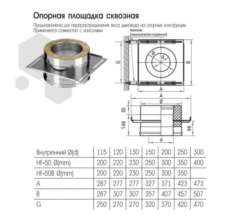Опорная площадка сквозная Ф 130х230 (316/430/эмаль) КРАФТ Стандарт-50 Керамика Термоэмаль