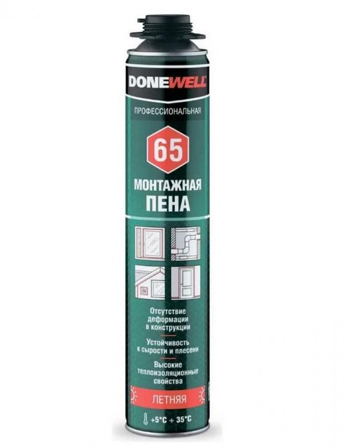 Пена полиуретановая монтажная Donewell 65 (900гр) проф. летняя (под пистолет)