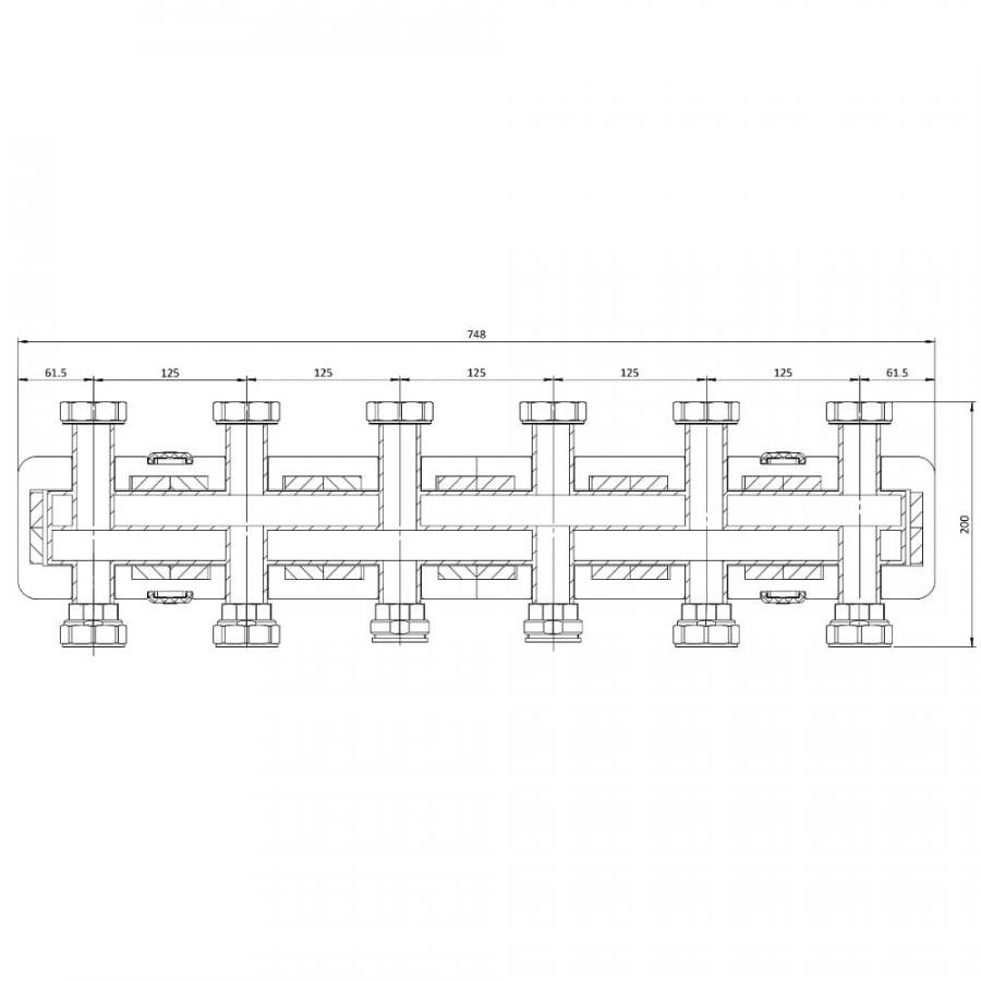 Труба коллекторная с профилем 1 1/4 " на 6 отводов (KAN) (S3.06) 1347154023 /MANIFOLDS/