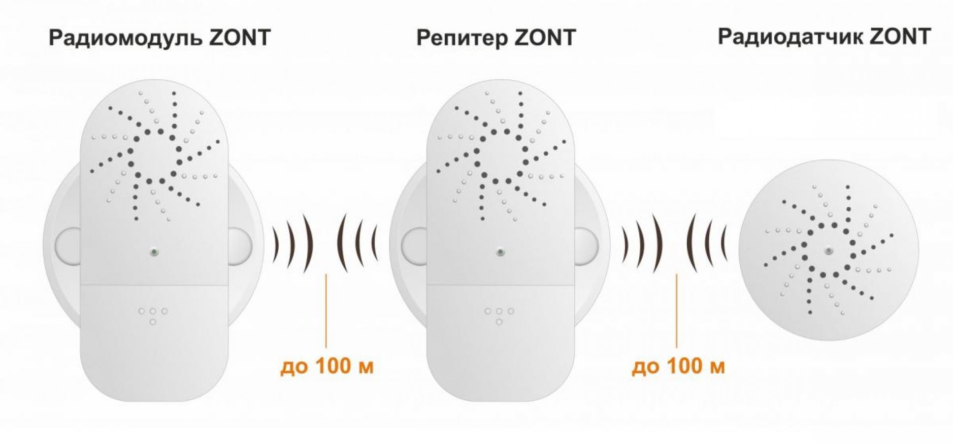 Репитер – это приемопередатчик, служащий для усиления сигнала между радиомодулем и радиоустройствами ZONT: беспроводные датчики различного назначения, комнатные термостаты. Репитер позволяет усилить радиосигнал и увеличить расстояние между радиомодулем и подключаемыми устройствами без потери качества связи. Работа осуществляется по двустороннему шифрованному радиоканалу связи на частоте 868 МГц.