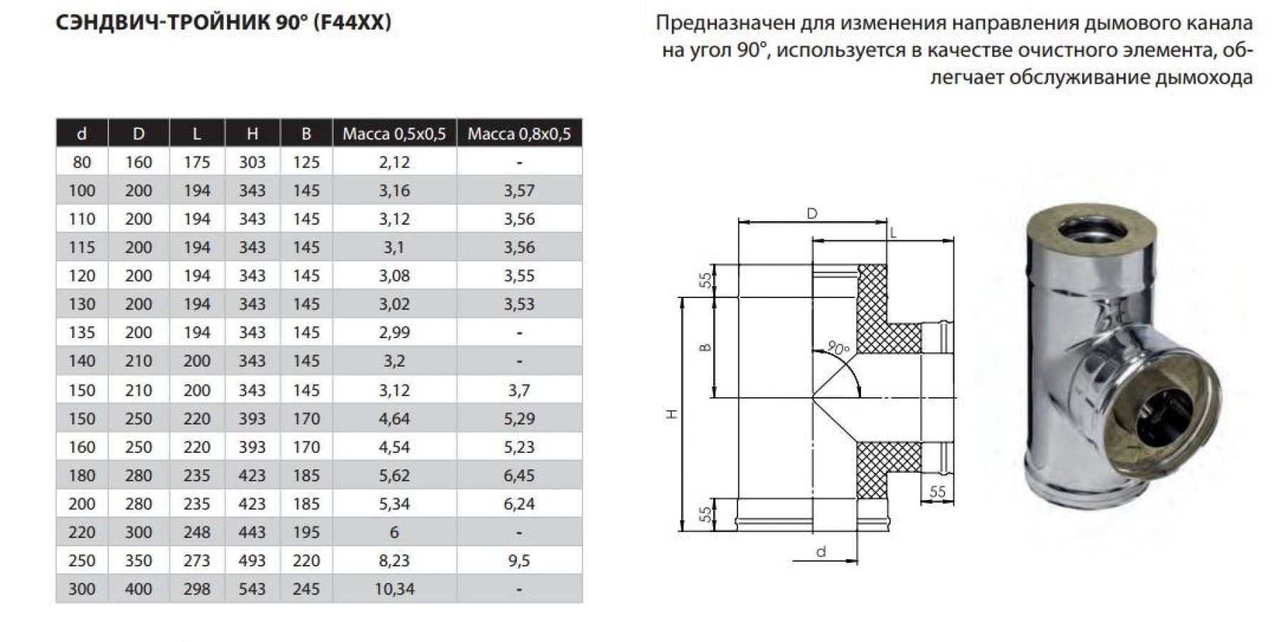Сэндвич тройник 90гр Ф 150х210 (430/1+0,5) Стандарт Плюс (f4455)