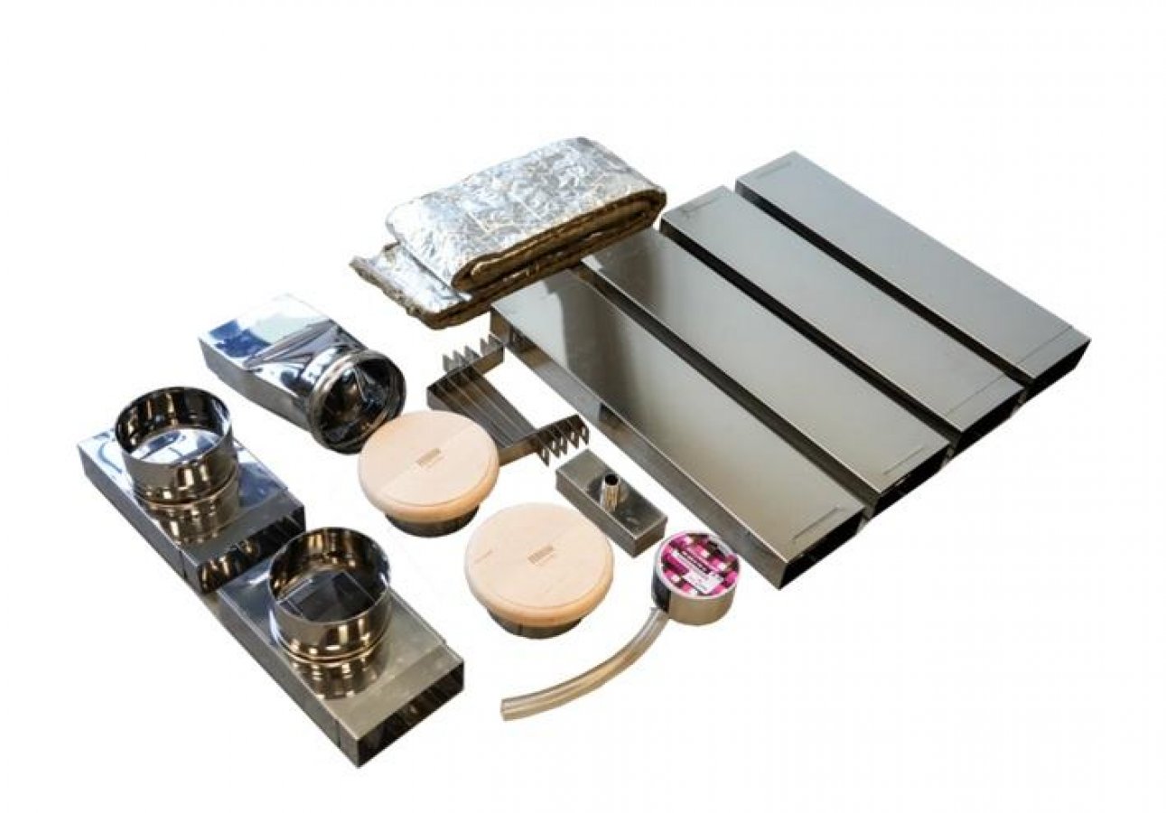 Комплект предназначен для сборки системы вентиляции в бане или сауне. Системы вентиляции предназначены для эффективного