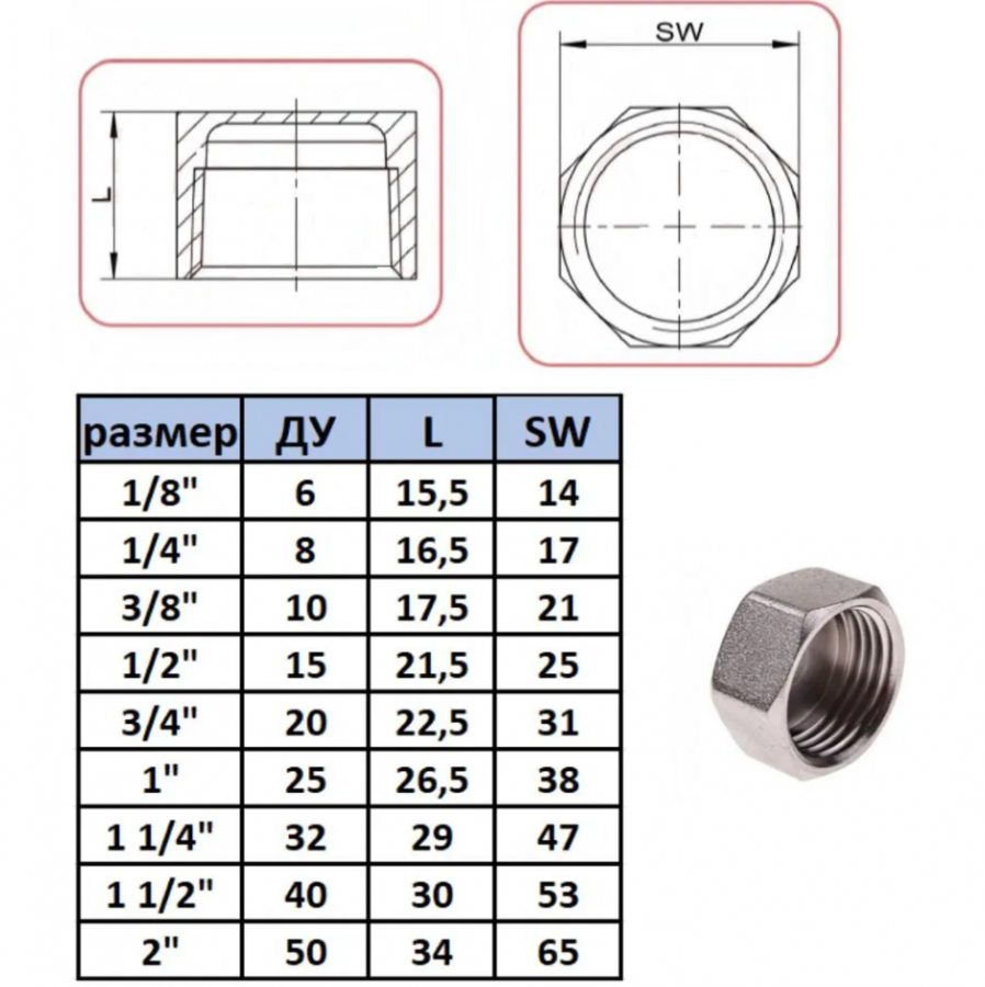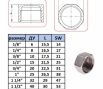 Резьбовая заглушка оснащена шести - (в размере от 1/8 до 1/2 дюйма), восьми - (от 3/4 до 2 дюймов) головкой под ключ. Резьба внутренняя правая, цилиндрическая BSPP (G).