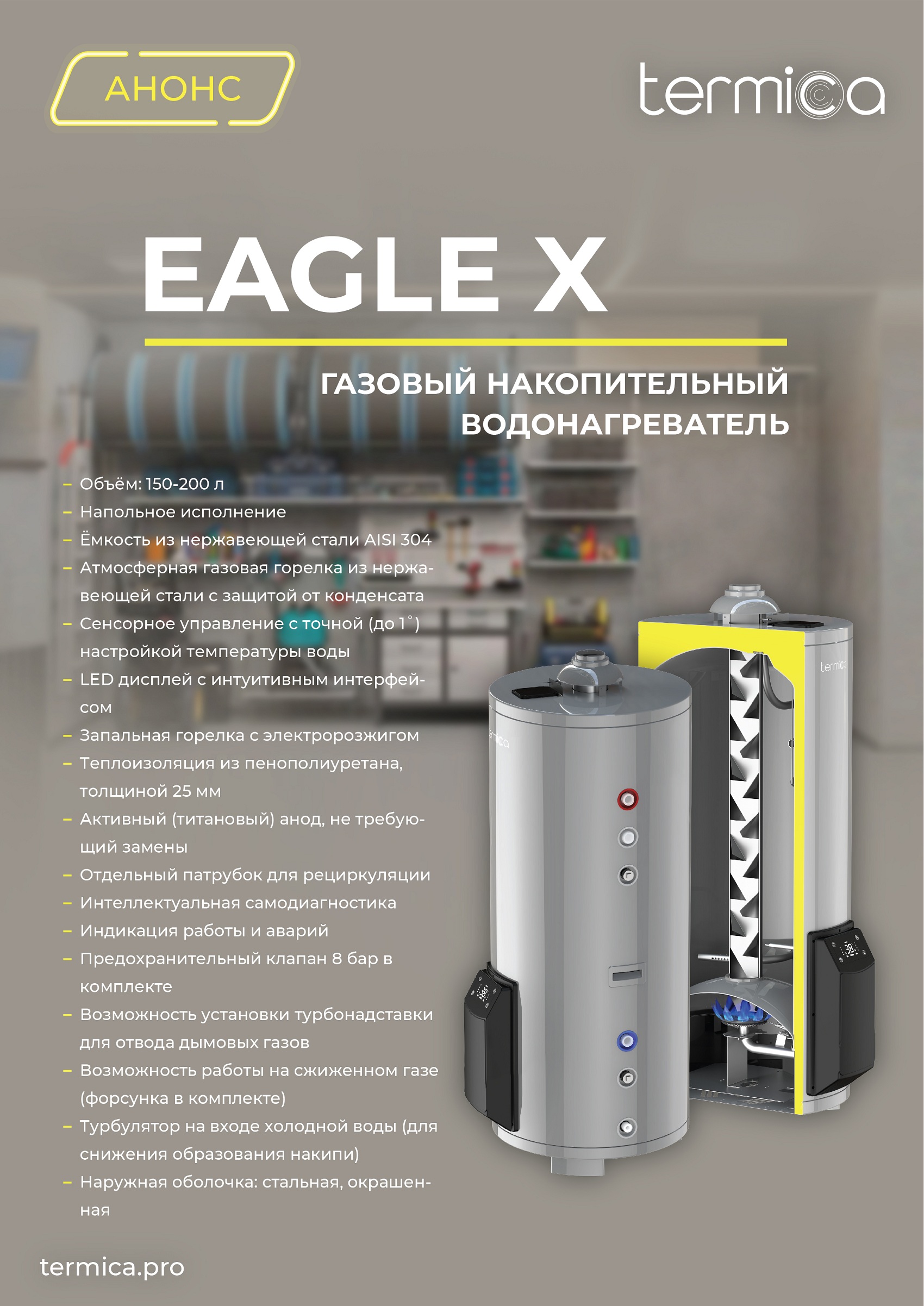 Сообщаем об обновлении нашего товарного каталога - теперь у нас вы можете приобрести газовые накопительные водонагреватели Termica Eagle X