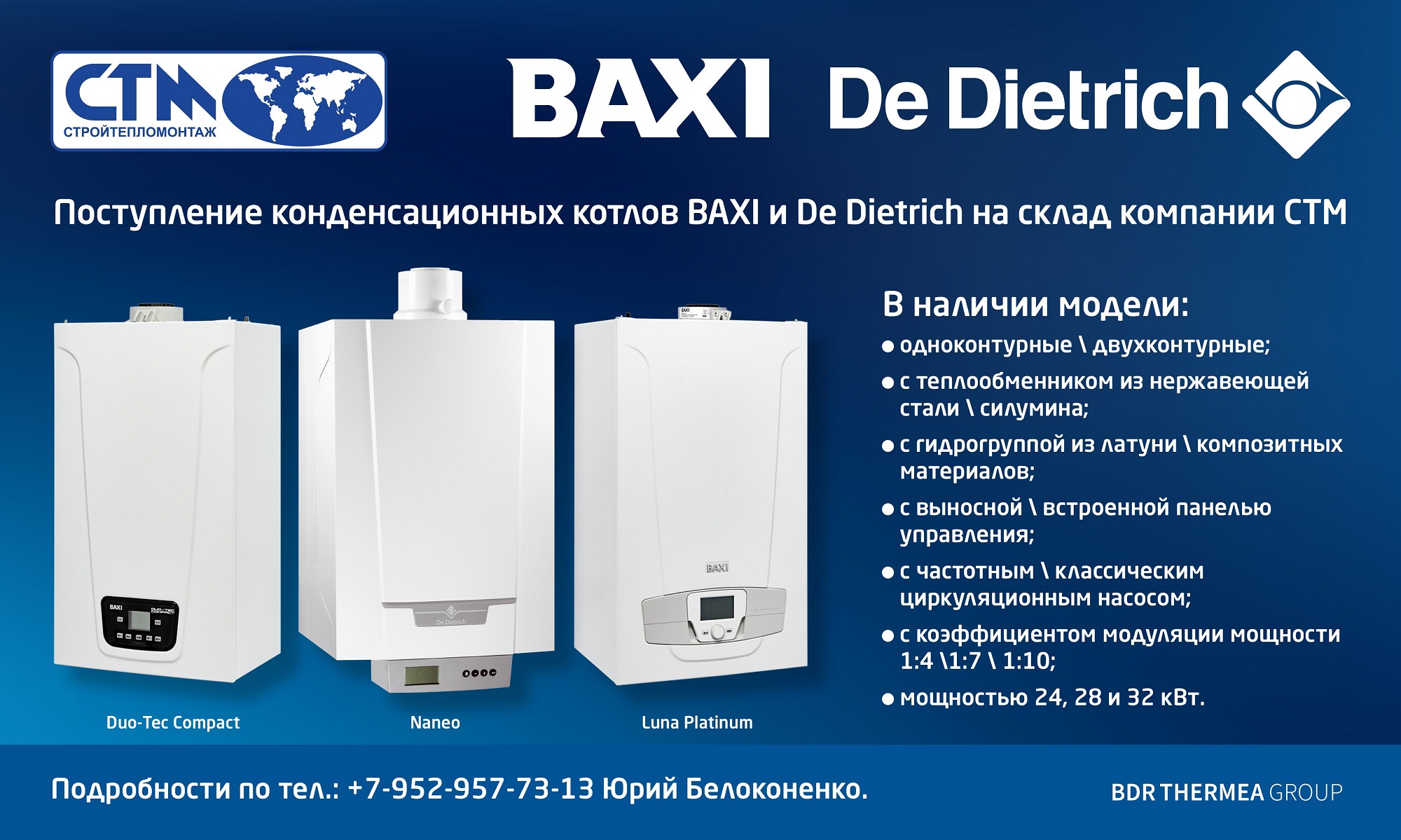 Сообщаем о поступлении конденсационных котлов Baxi и De Dietrich - Duo-Tec Compact, Naneo, Luna Platinum