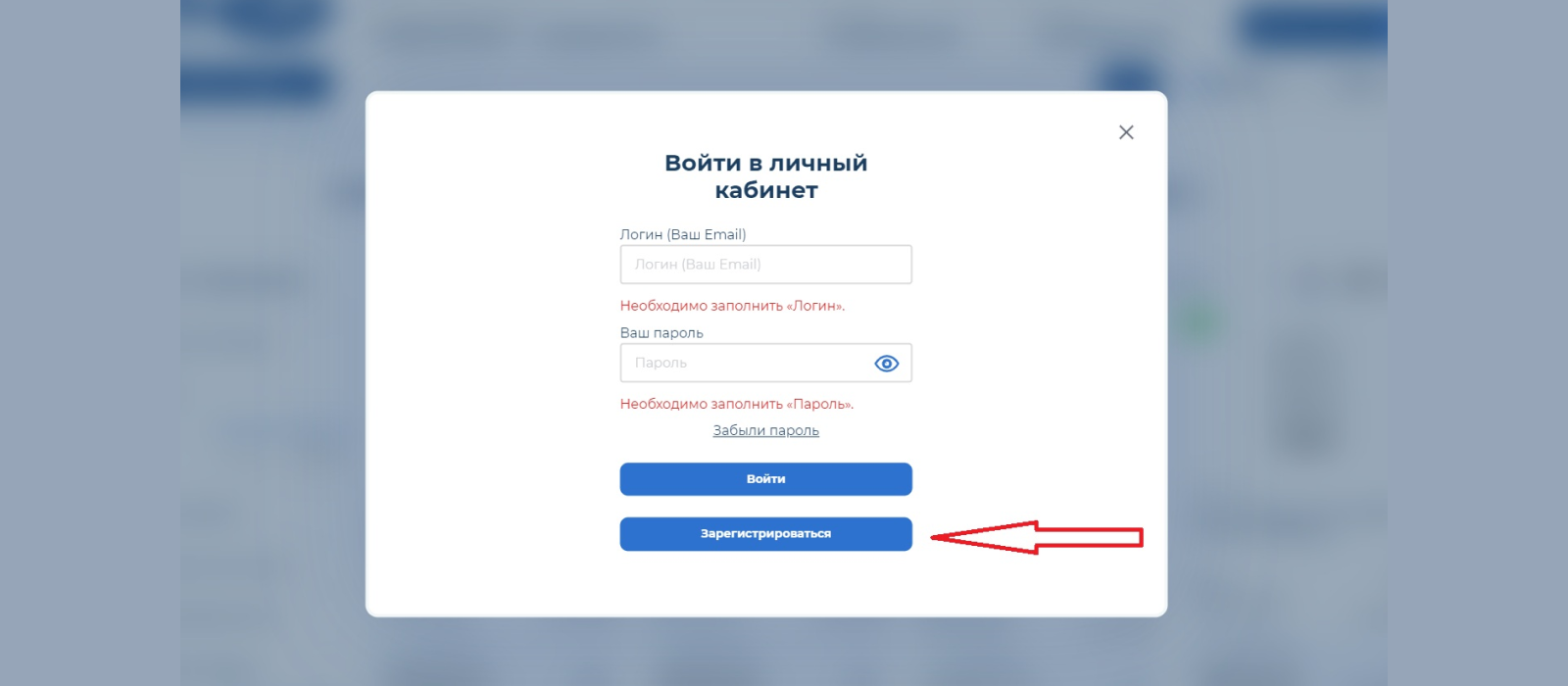 2. Далее в открывшейся форме необходимо кликнуть кнопку "Зарегистрироваться"