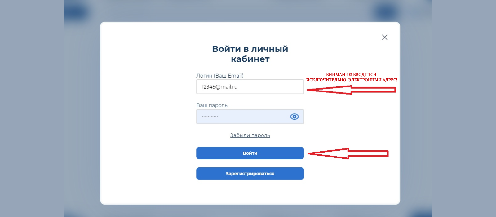 3. Регистрация завершена и теперь можно авторизироваться на сайте - для этого нужно кликнуть по кнопке "Войти", а затем ввести свои данные в открывшейся форме